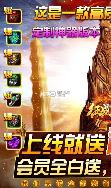 《征战王权》上线就送神器都白给,皆可掉落订制神器版本,散人打金,这里福利满满,0氪金也能当大哥,光柱满地爆超高的爆率,上线就送秒杀刀,上百地图传奇的玩法,在这里就来追梦传奇。