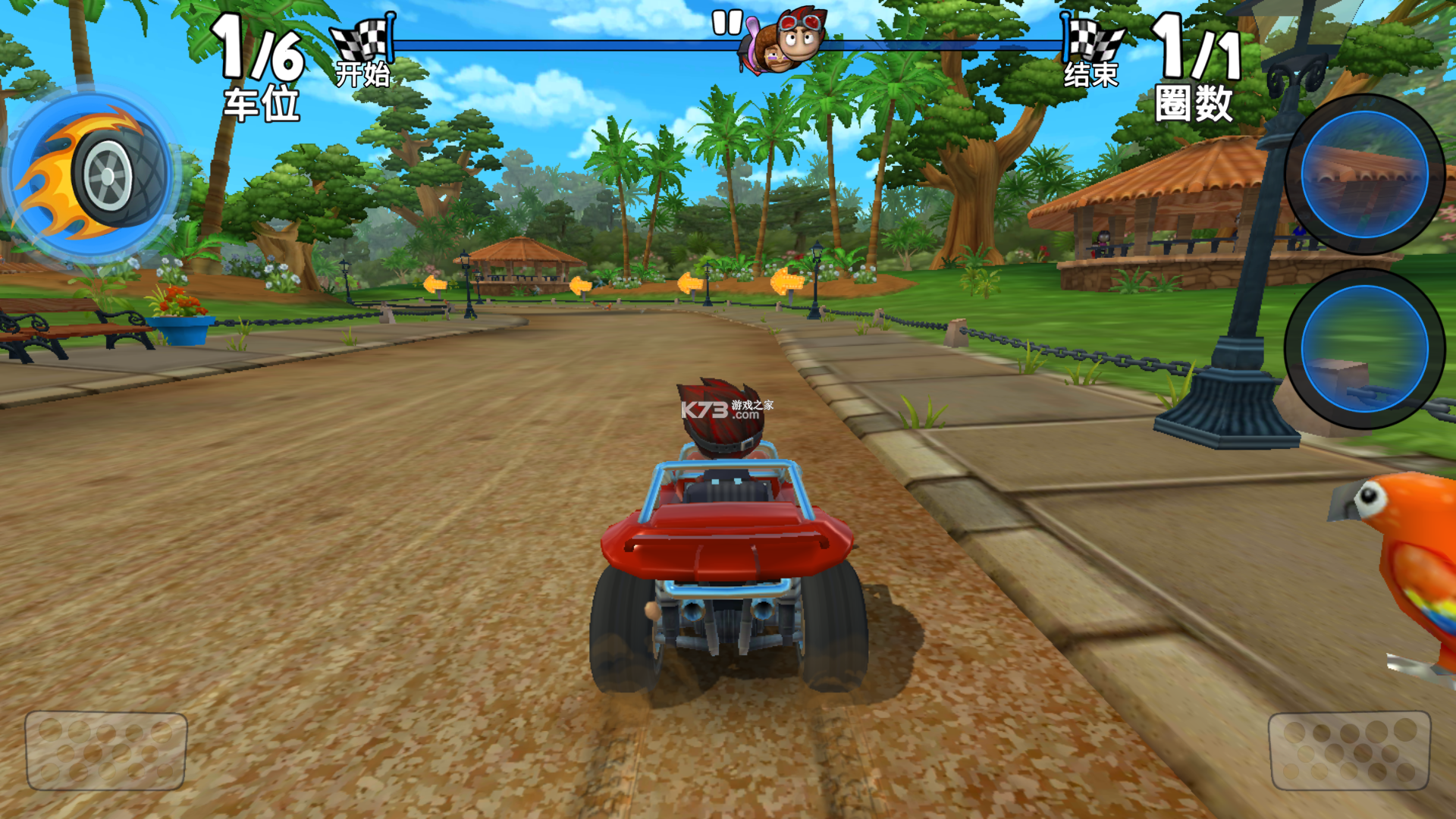 玩家可以选择一辆沙滩赛车作为自己的竞技道具,开始在崎岖不平的赛道上行驶。