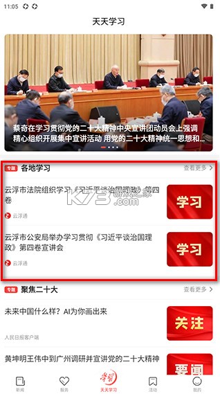 3、通过点击“天天学习”栏,你可以在线学习党的知识和政策知识