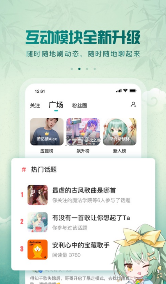 5sing原创音乐app是一款非常好用的音乐播放软件,5sing原创音乐安卓版拥有大量的优质音乐,这里能听到唯美诗意的古风音乐、独立思想的流行民谣;也有二次元歌曲、流行金曲的动情翻唱!与音乐人交流互动——上万位知名音乐人入驻,小曲儿、回音哥、河图、慕寒...结识志同道合的朋友——共同学习音乐创作的知识,创作出属于自己的音乐。