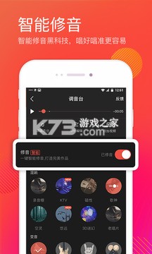 调音台---音调高了没关系,音调太低不要紧,手指动一动,调音台圆你所想。当然,有一天你厌倦了自己的声音,有了K歌,你可以自由在男声、女声里穿越转换,犹如神助!
