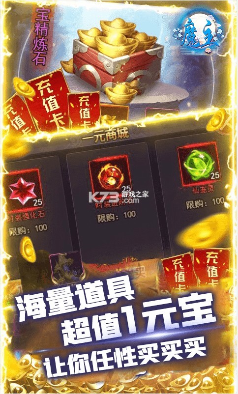 《魔主一元商城版》是一款华丽特效的玄幻仙侠类游戏,游戏重现了山海经的世界,一键挂机轻松升级,海量收益离线也能自动获取,游戏内还有限时的boss和各种各样形态的怪物,多人在线真实pk。