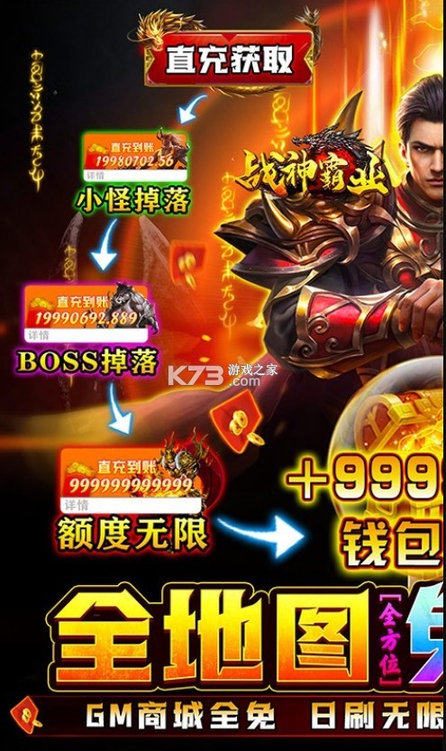 四职业经典传奇动作手游!上线送GM特权,免费开启GM指令,每日通过完成任务可获得充值余额,免费提取真实充值额度!每日登录送真充卡,轻轻松松做土豪!全图爆真实充值,根本不需要充值!绝对白嫖福利版本、全部免费无限送!福利全新升级,千倍投资,永久年卡超值豪礼领不停!快唤回曾经的兄弟们一起战斗吧!荣耀归来,再创传奇,杀人爆装支持多人同屏竞技的热血传奇手游在游戏中玩家可以随心所欲地找到自身的另一半,另外,战神霸业传奇中还有海量副本和任务等你来挑战,花式玩法,大家可以一起做情缘任务增进亲密度,随时都能够与其他玩家进行对战,不光能打他,还能把他的装备抢过来,帮会乱斗,各帮会可以约战,胜利的一方会得到丰厚的奖励,失败的一方只有安慰奖,超多游戏副本随意进入,在副本中刷整套神级装备与神级炫彩坐骑,散人玩家再也不用羡慕土豪的特权,登陆就可以领取免费VIP,就是那么的爽!