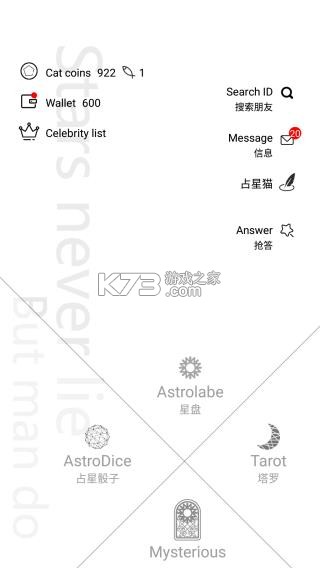 《占星猫app》是一款新颖前卫的星座占星软件,以其大胆独特的界面风格吸引用户。它能准确预测今日、本周、本月及全年的爱情、工作、财运等运势,基于星象学原理。最新版本还增加了塔罗牌占卜功能,让你更好地占卜命运,快来下载体验吧!