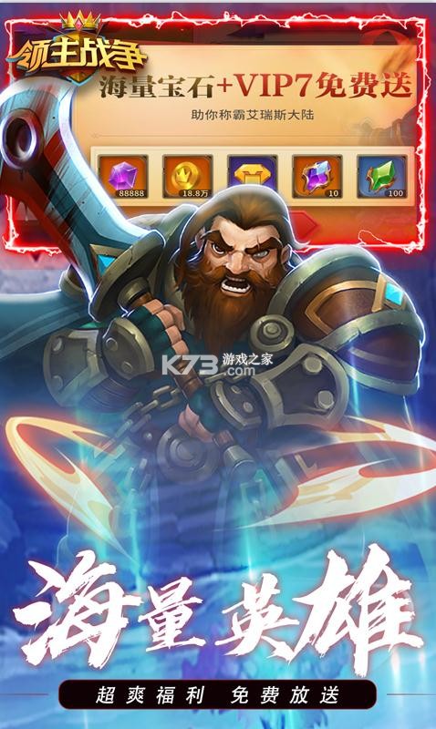 超高人气热血SLG手游《领主战争-送百抽万宝》火爆来袭!多重首发福利齐发,助力领主征战广阔大陆。登录即送史诗级英雄光辉祭司,快速进阶为你保驾护航。开局送百抽,海量英雄任性召唤。累计登录送满级VIP,白嫖也能当大神。超值成长基金48倍返利,数百万金币壕无人性。无畏共联盟,策略赢天下。
