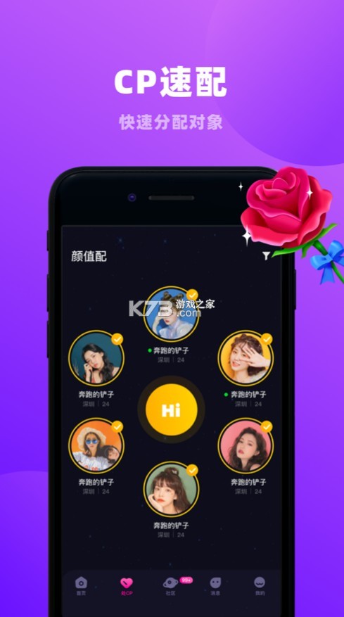 专为年轻人打造的个性化交友娱乐社区,轻松找到开心玩伴;精彩互动房间【相亲房】让你与好友快速破冰,消灭尬聊,急速升温。
