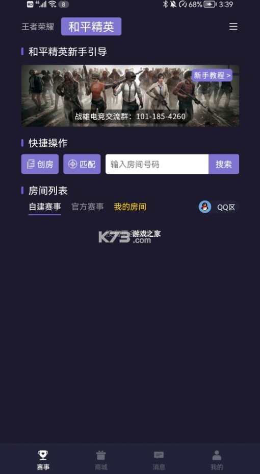王者荣耀用户选择游戏点击相应赛事,选择创建房间或者匹配房间,成功之后等待对方报名参加,双方准备好之后即可开始进行比赛,