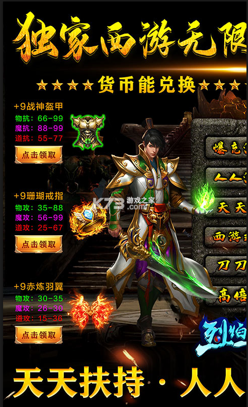 《烈焰皇城》每日登录领扶持奖励,领超多的会员奖励,元宝无限领,福利超级多,刀刀切割独家的西游副本,登录后天天扶持领扶持令牌,每日必掉宝,人人就来享刀刀切割,领取满级的会员赞助。