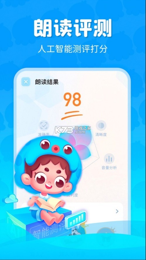 朗读评测:最新部编版小学语文课本同步,播音员水准朗读示范,朗读、背诵情况一目了然。
