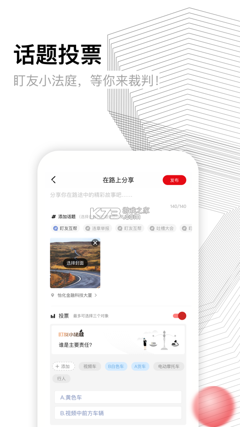 盯盯拍App支持各种主流社交平台,可进行照片、视频和路书分享, 盯盯拍App 5.0已内置官方“在路上”移动社区。