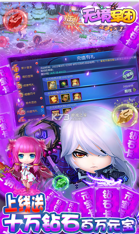 ★上线送VIP10(上线邮件特权卡直升V10),钻石*10万,金币*500W!