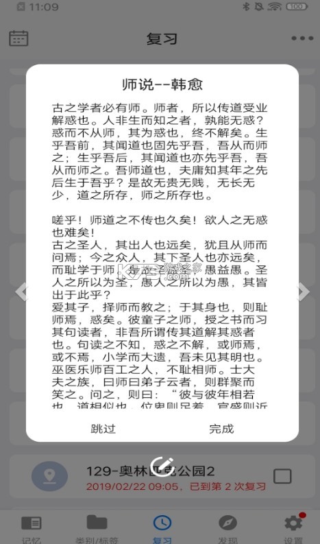 专用的复习界面,除了显示今日任务,还能显示之前未完成的任务,不用担心遗漏复习任务