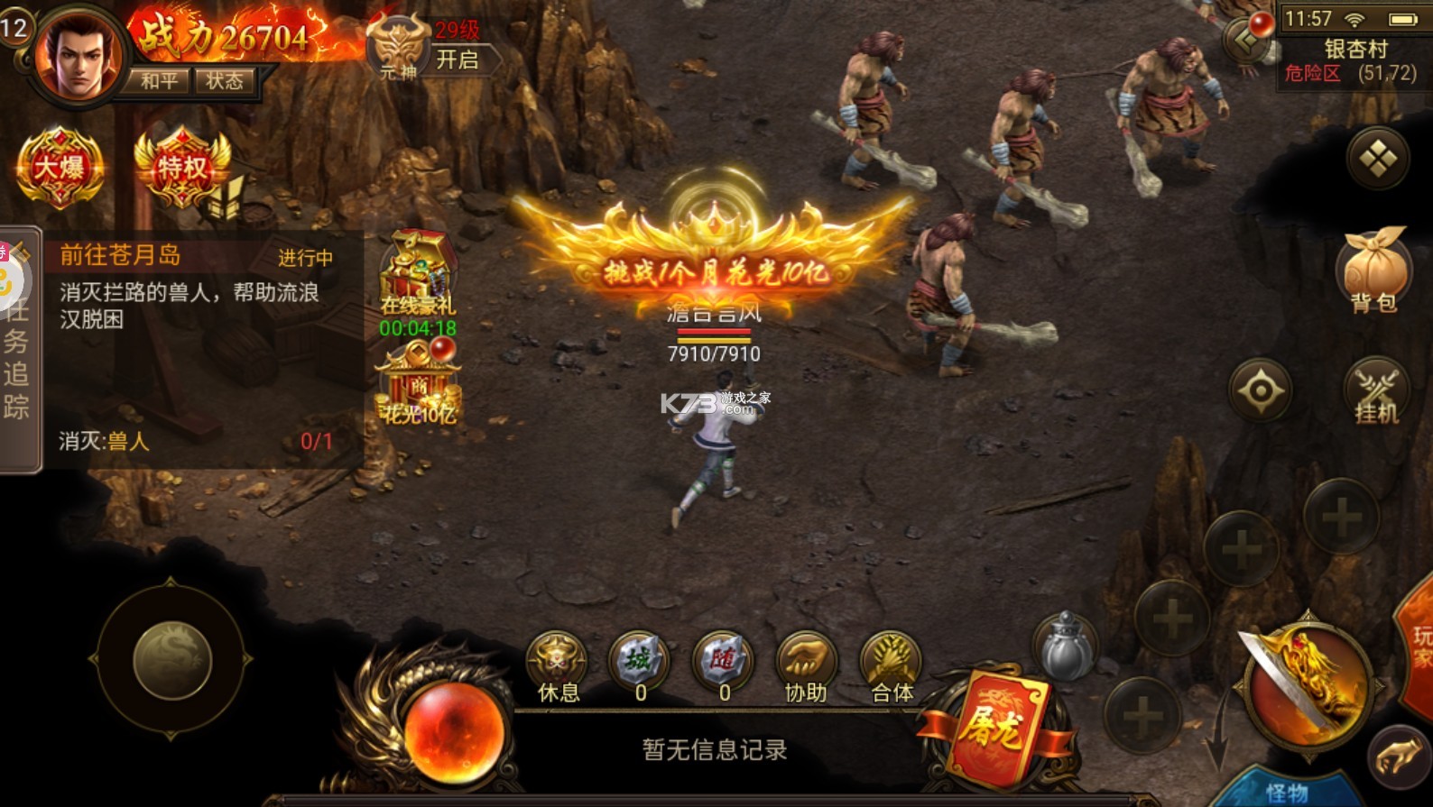 ★打BOSS即可激活聚宝盆,每5分钟送68888元宝,越玩越富有!