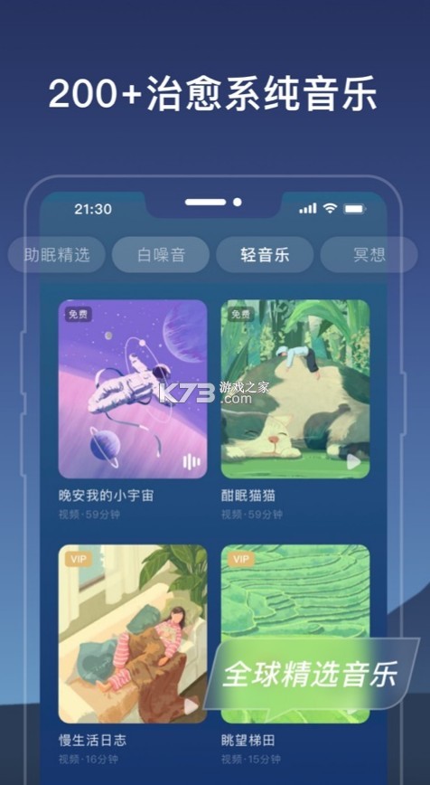 3、联合环球音乐、伯克利音乐学院、国内外知名冥想老师打造精选白噪音、古典音乐、冥想音乐等助眠音乐曲库,给你暖心的音乐陪伴。