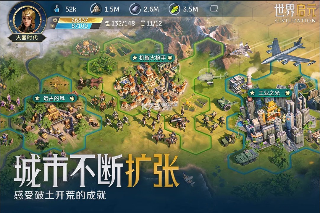 在《世界启元》中,你将深刻体验到兵种、科技与时代的共同进阶。从最初的石器时代,到青铜时代、铁器时代,再到工业革命、信息时代,你将见证并引领着你的文明不断向前发展。同时,随着时代的进步,你将能够解锁更先进的兵种和科技,为你的文明增添更强大的力量。