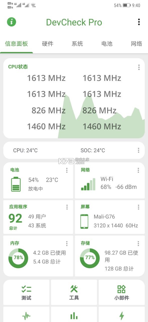 软件操作简单,用户友好。无论是专业用户还是普通用户,都能轻松上手,满足各类用户对硬件信息的使用需求。app支持提供良好的电池优化功能,确保您的设备在最佳状态下运行,延长电池寿命。与其他类似应用相比,DevCheck展示的系统信息更为全面。您可以轻松了解设备型号、处理器、内存容量、存储空间等