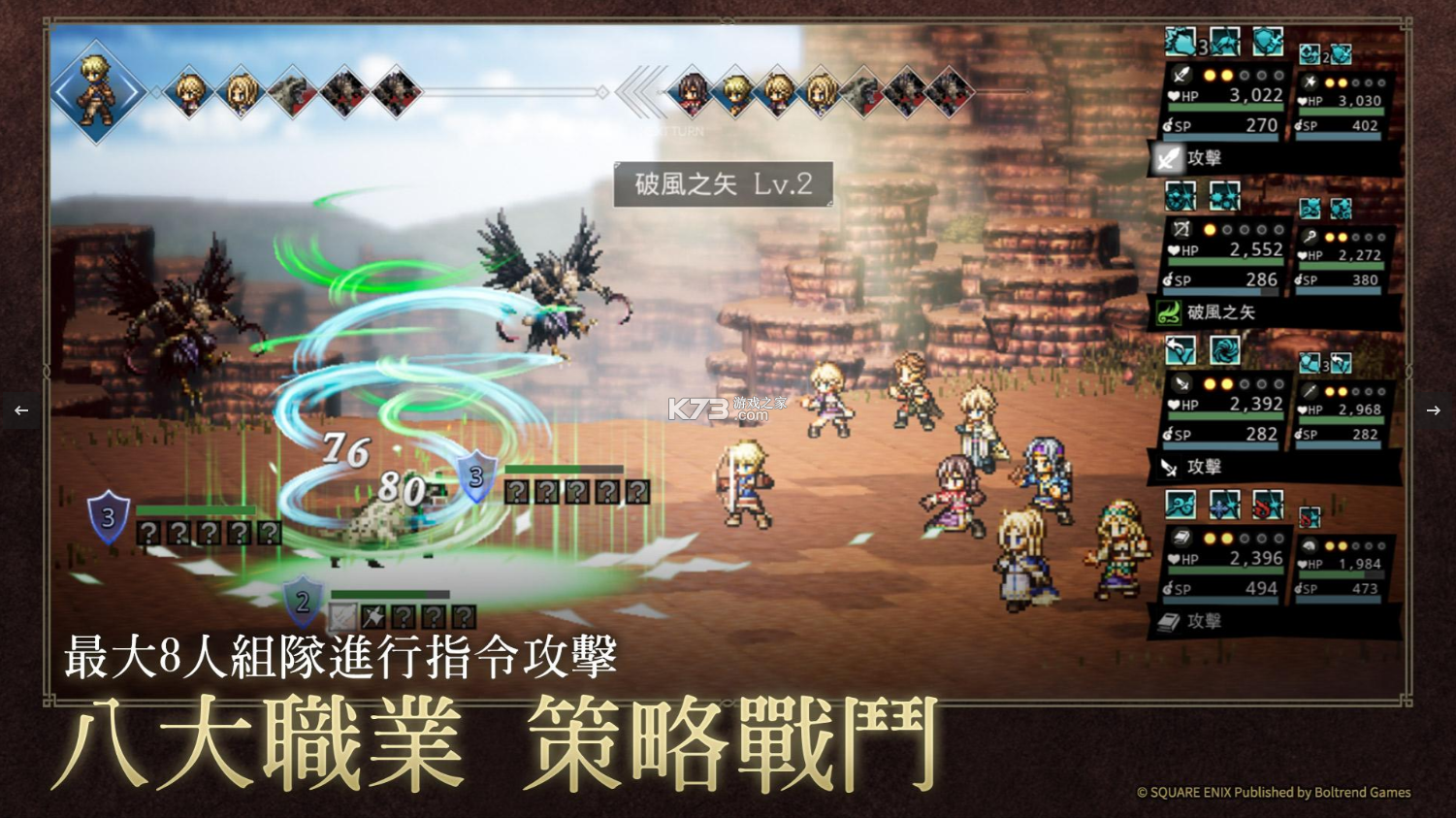 游戏讲述了在奥鲁斯特拉大陆上,8位主人公各自展开的精彩故事。与原作类似,每位角色都有其独特的背景和动机,玩家可以通过完成任务和探索剧情,深入了解每个角色的内心世界。游戏每个月都会更新新的内容和剧情,保证了游戏的新鲜感和可玩性,同时也让玩家有机会见证角色的成长和变化。