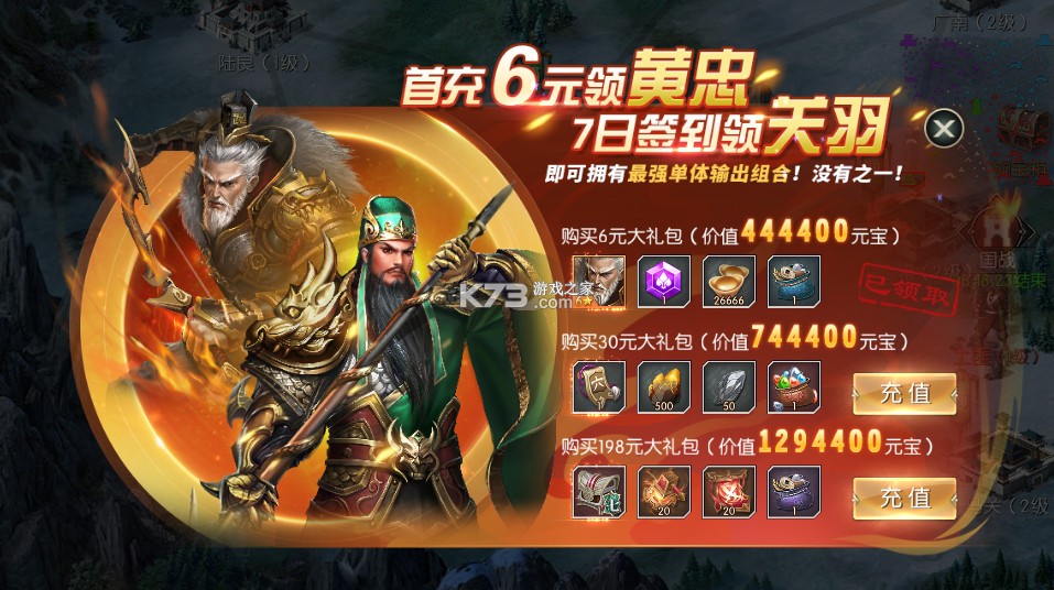 10、七日登录即送三国最强男团-五虎将,轻松组建国家队,过关斩将称霸中原。
