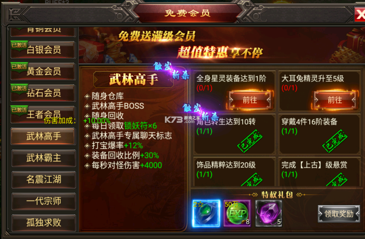 ★会员全部免费!无需充值也可升至满级!