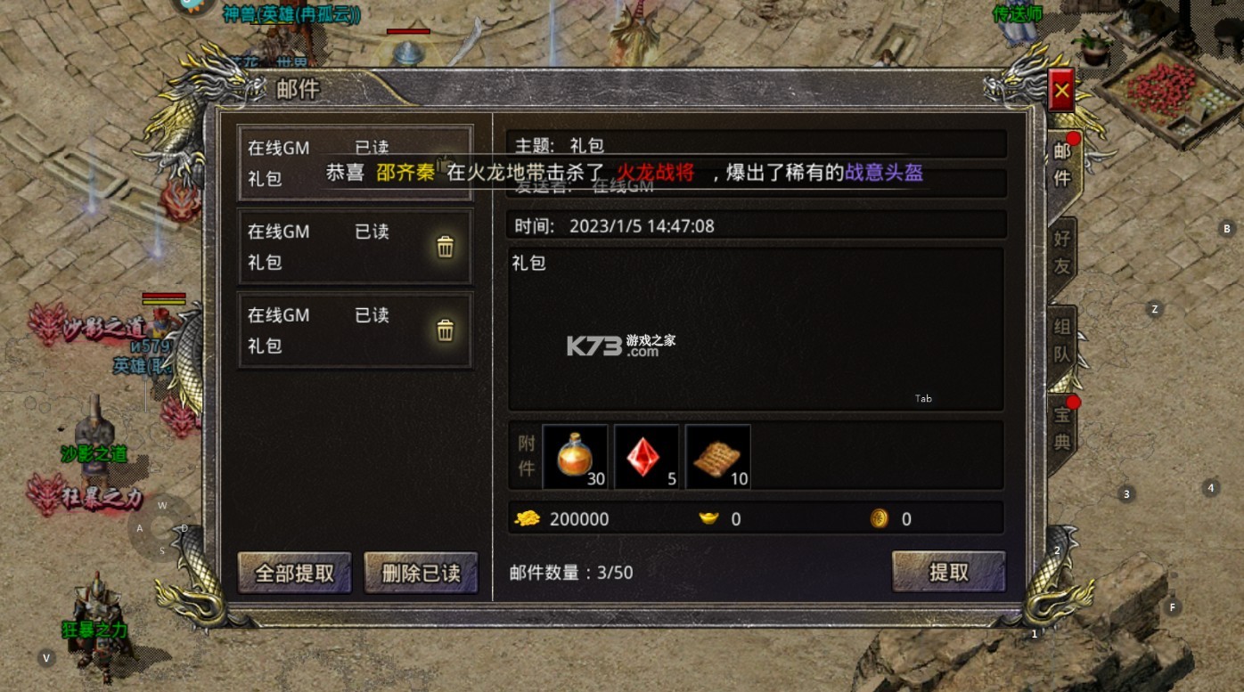 新手礼包:金币*200000*1,强效太阳水*30*1,火龙碎片*5*1,技能书页*10*1