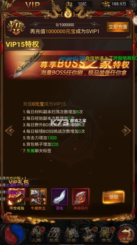 ★会员特权vip免费福利:每日登录直送充值点(1充值点=1元),所有玩家均可免费升满特权,享受所有会员服务