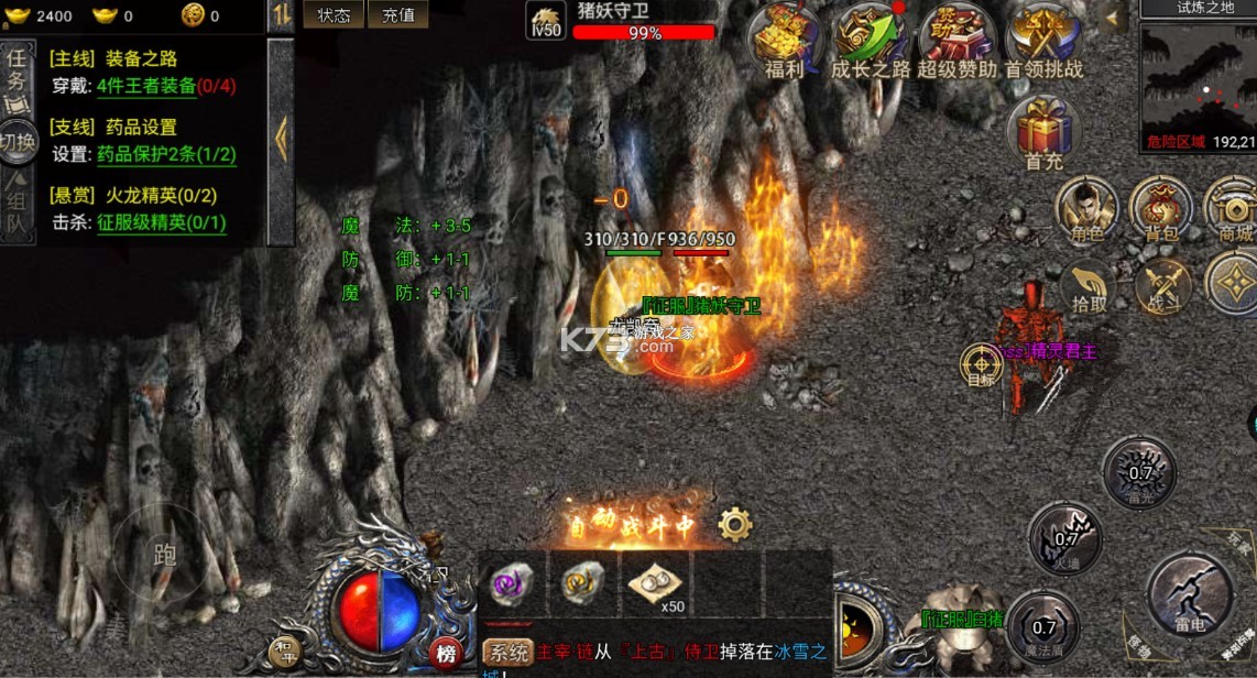 4、装备全靠打,不氪金也能称霸全服,超高的装备掉落概率,一身神装就是爽