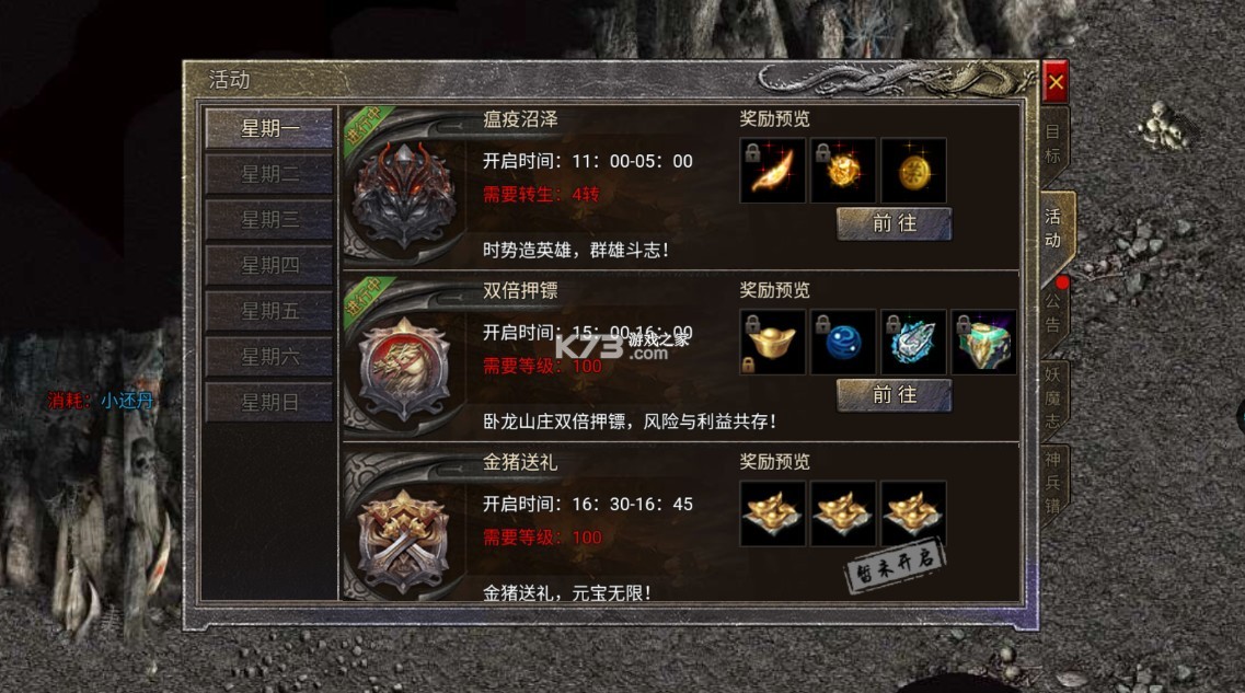 每周举行的限时签到活动,海量的金币,元宝,还有机会抽取满级坐骑