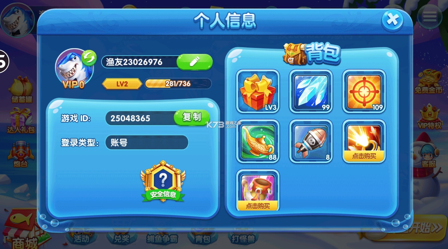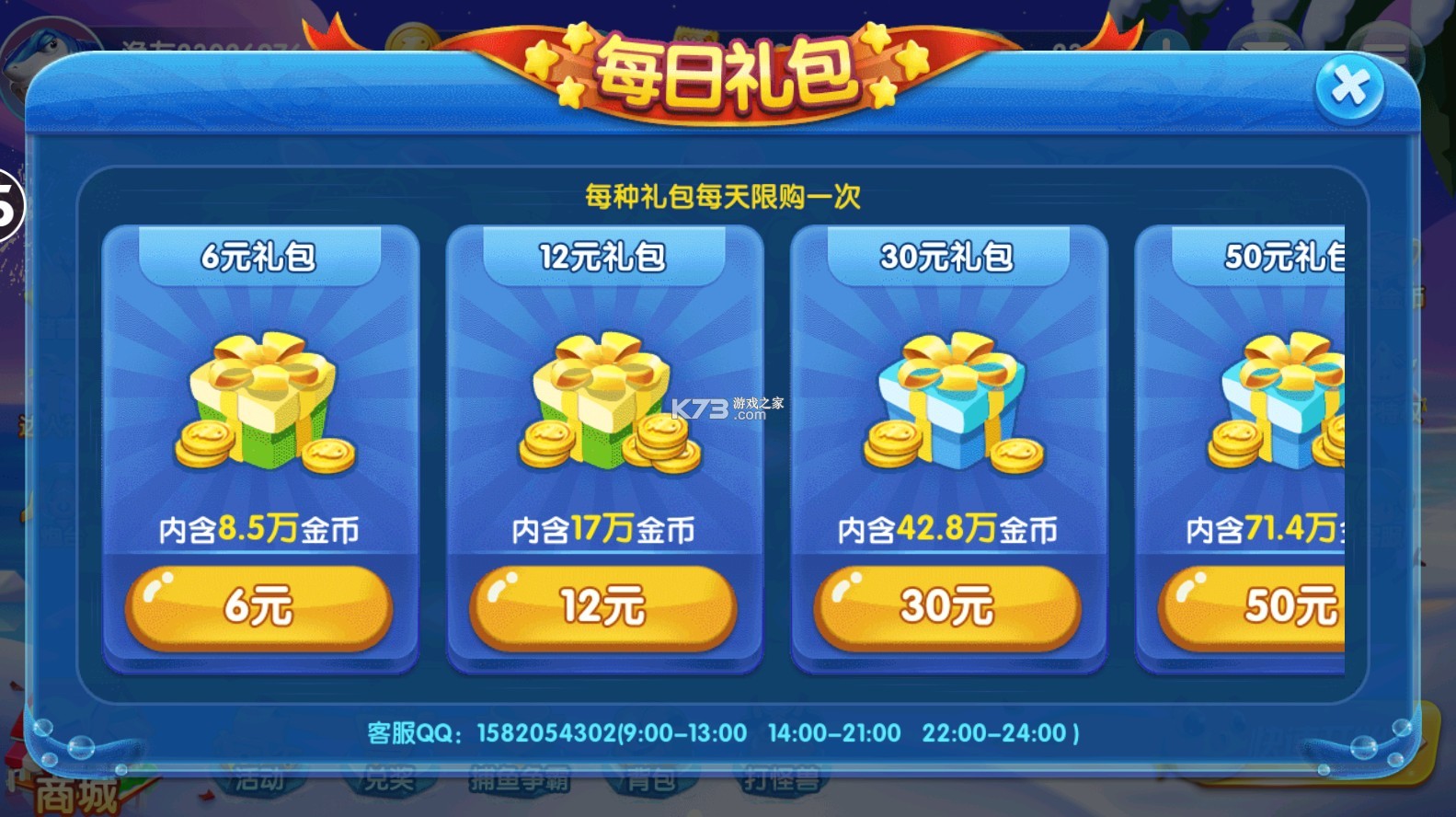2.在任意渔场内获得的金币会统计为积分(不包括使用导弹)