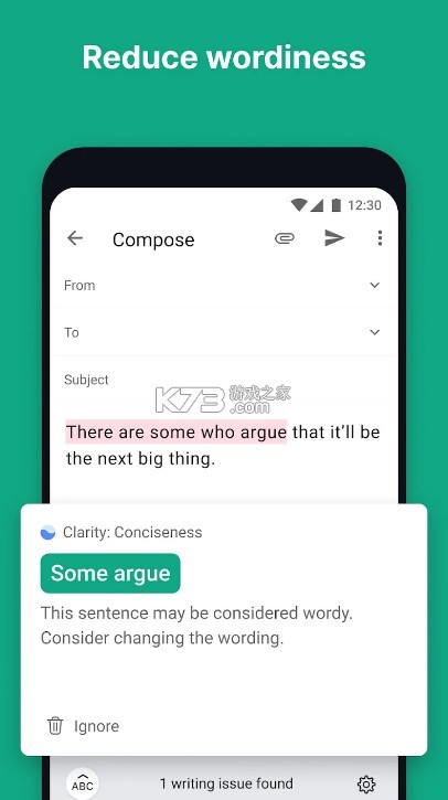 使用您的个人写作助理、语法检查器和编辑器编辑和更正您的语法、拼写、标点符号等。