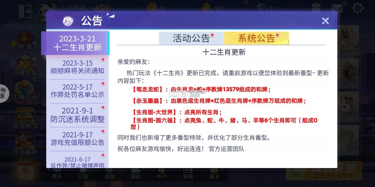 注意:赖子牌类型(双喜临门/吉星高照)和赖子牌数量(四季平安/五福临门)的倍数是可以互相叠加的。