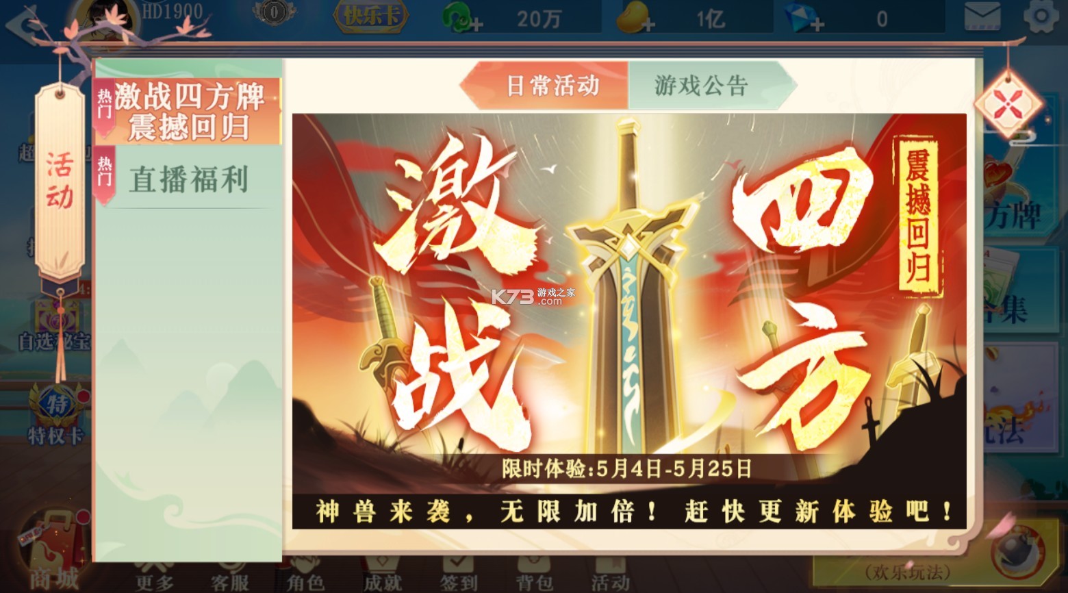 玩家每打出一张神兽牌,自身神兽倍数翻5倍