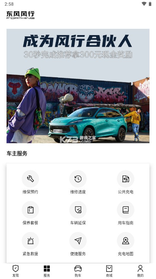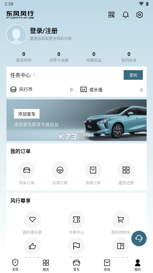 东风风行App 是集社区、整车购买、智联车控、用车服务以及在线商城线上商城于一体的车主服务平台。