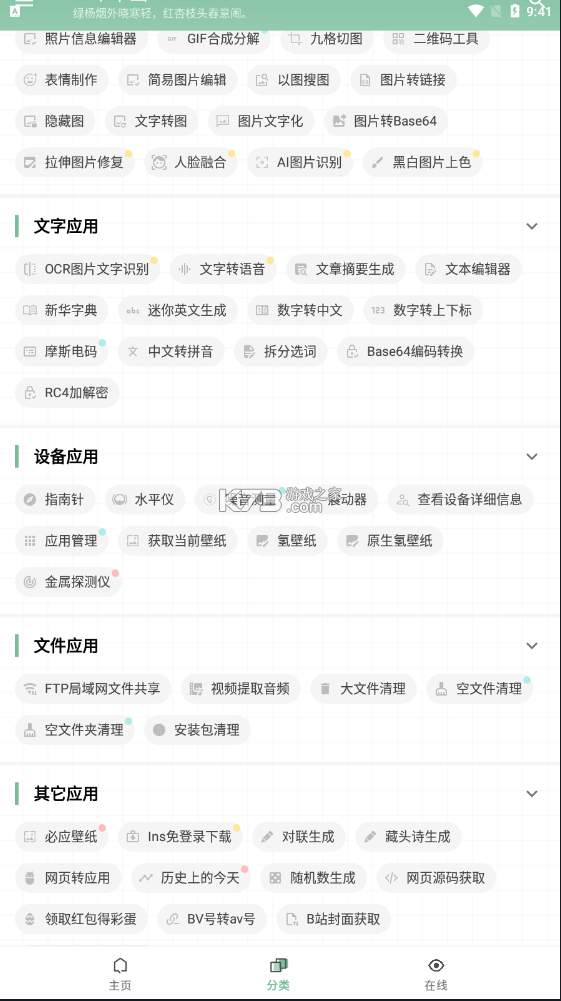 1、全面的软件,涵盖了应用管理、文字处理、直连提取、一个木译、短信伪造、WiFi密码查看等六大板块功能,细分的内置小工具更是多达几十种