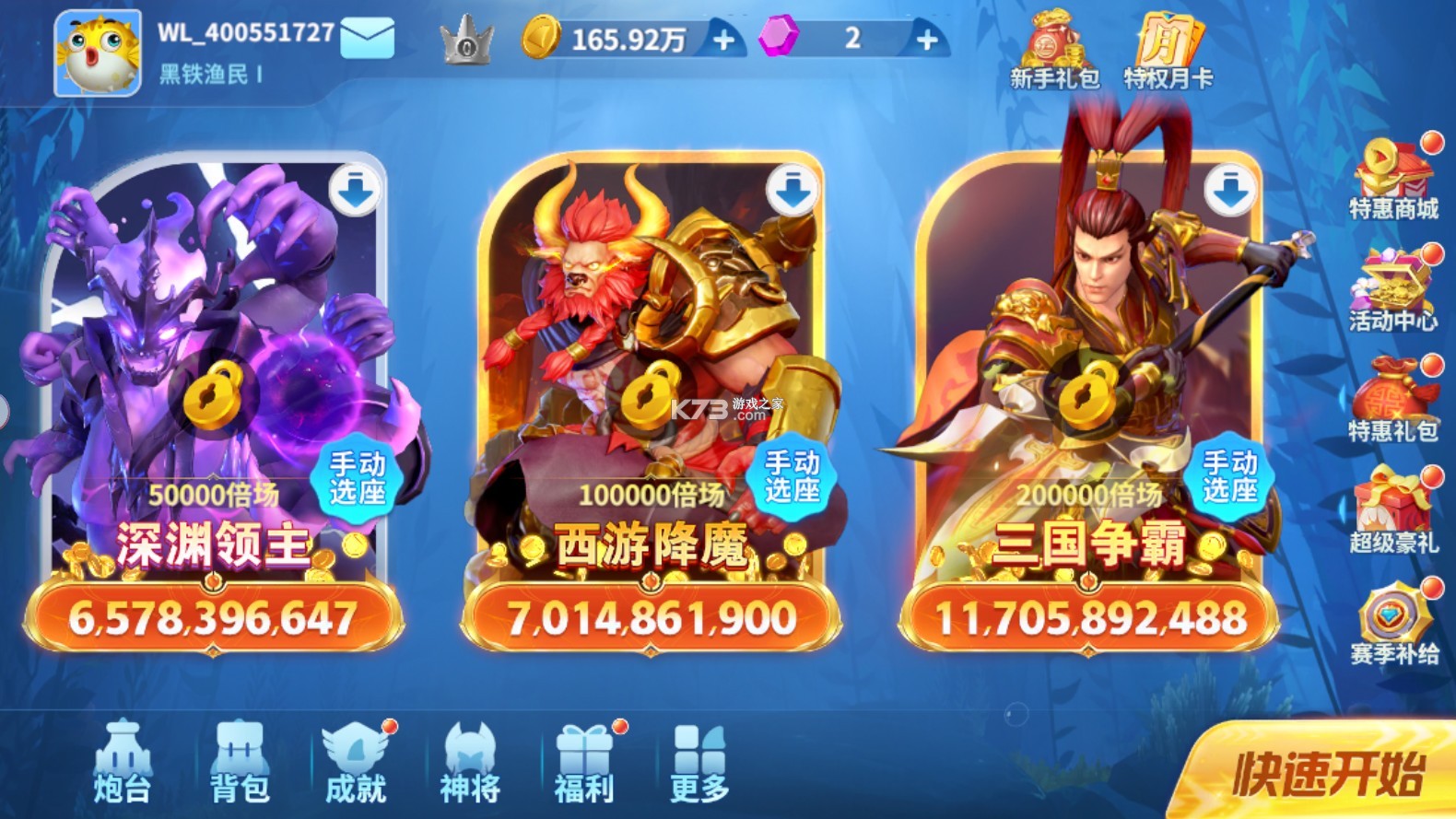 2.“战神宝库”活动隆重登场,打鱼抽奖得战神,战神升级快人一步!