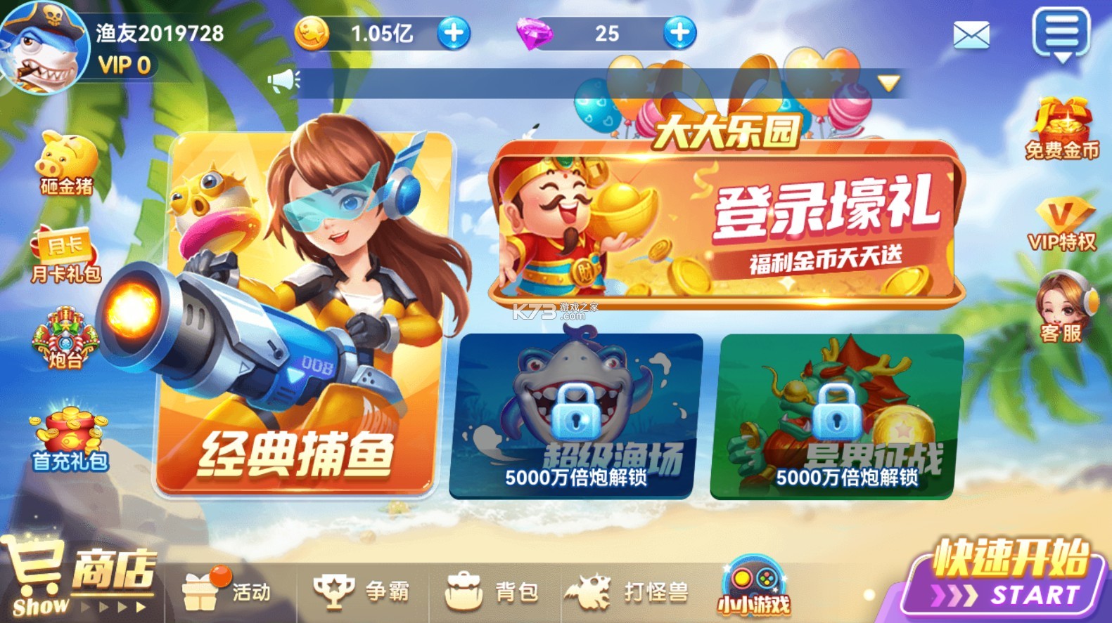 6.大厅的大大乐园玩法可以送更多的礼包,每天也可以点一点;