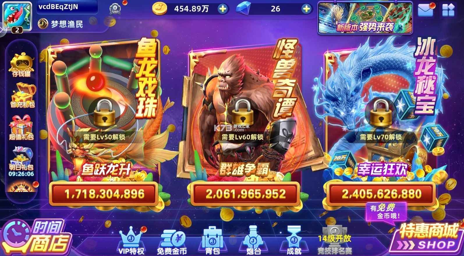 每日奖励:390万金币、10个技能锁定、10个冰冻技能