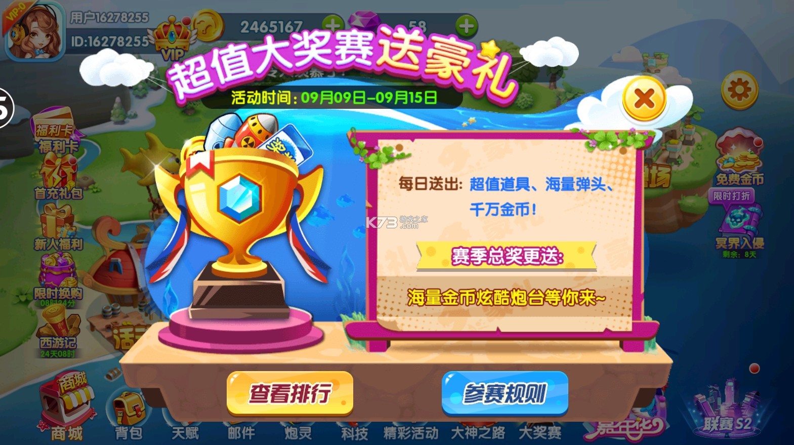 赛季总奖更送:海量金币炫酷炮台等你来——