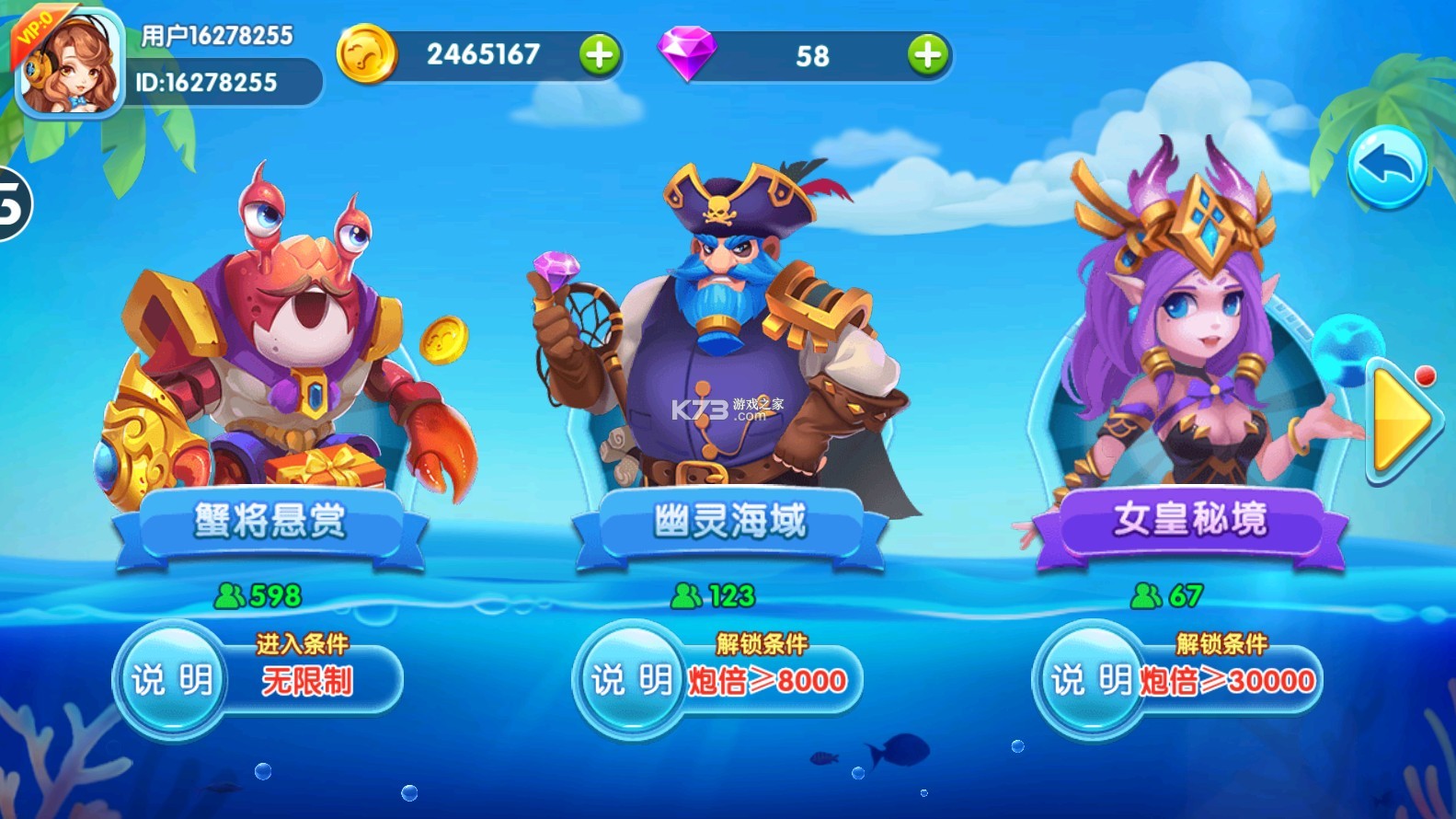 在比赛模式里面还可以进入到比赛专区,领取每日的福利,让您轻松获取奖励,尽情享受捕鱼的乐趣。不同的渔场提供各种玩法和挑战,让您不断迎接新的捕鱼挑战。