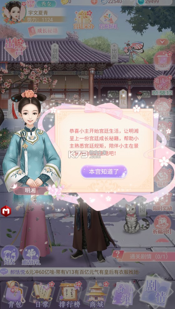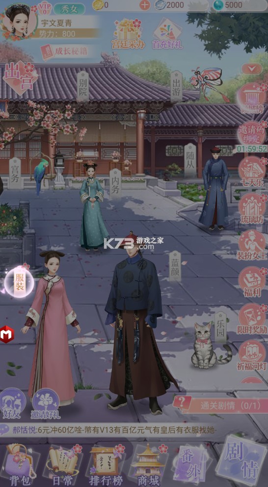 在游戏中,你将穿越到古代宫廷,体验古代宫廷生活的方方面面,包括服饰、礼仪、政治等。