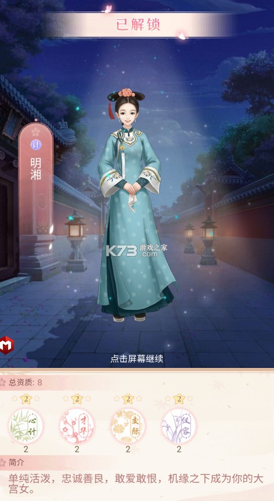 你需要提升自己的属性、心计和资质,不断升级,以成为古代宫廷中的一位杰出角色。