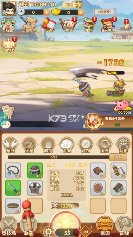 ★ 神铠收集可以涨战力,大量三国经典人物的形象