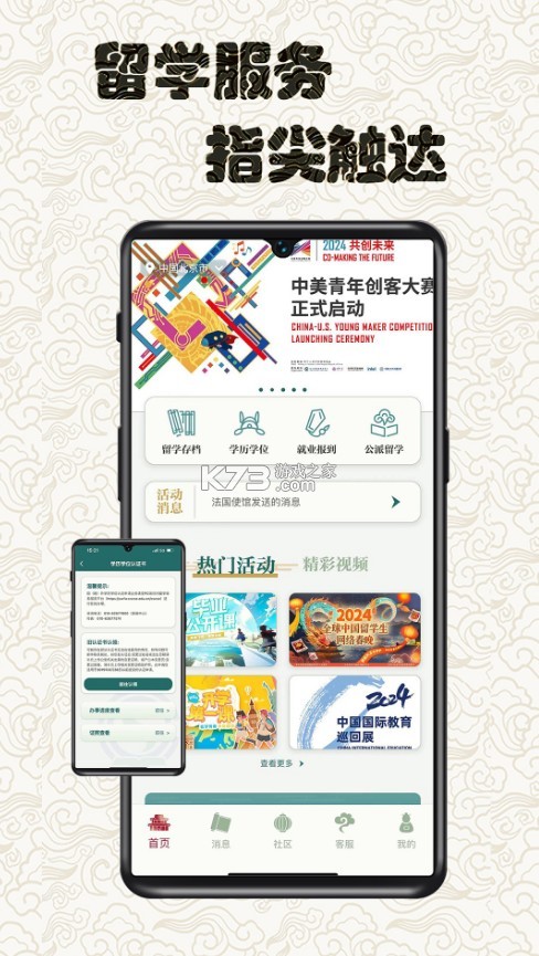 在政务服务方面,《留学e网通》实现了多项政务办理的移动端集成,包括但不限于留学存档的申请、学历学位认证进度查询等。用户只需一次登录,即可轻松完成各项手续,真正做到化繁为简,高效快捷。