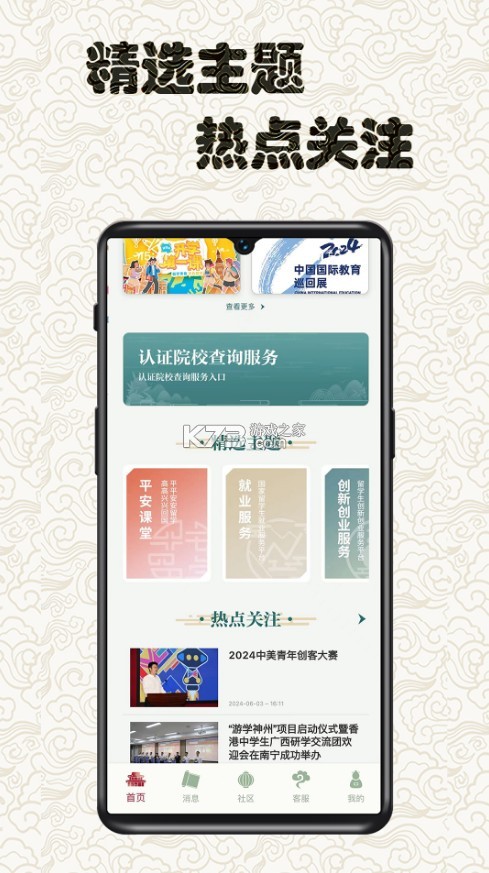 2.热门服务精选主题:认证院校查询服务、平安课堂、就业服务、创新创业服务等