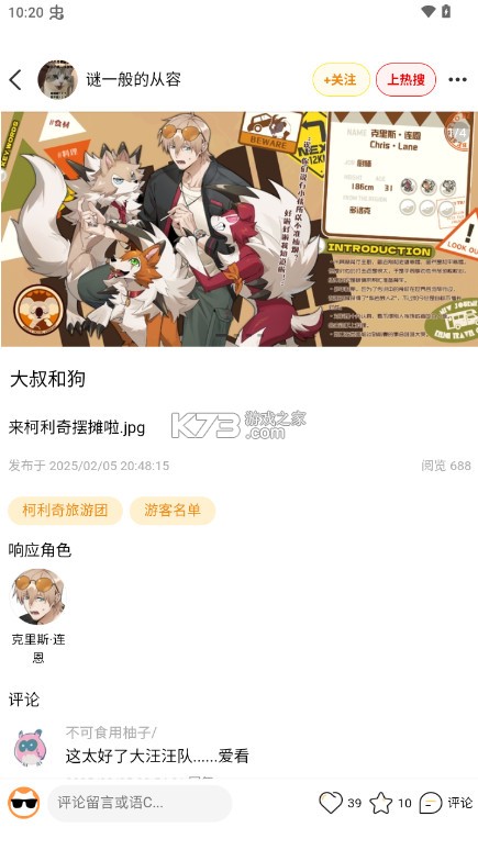专为二次元创作者打造的创作交流平台,用户可以在平台上发布自己的原创作品,包括画作、小说、漫画等,与其他创作者共同欣赏和交流。每个OC都有专属的角色主页,用户可以通过特色“角色响应”功能与其他创作者进行OC互动,共同创作OC故事。此外,还有OC评论、角色动态等功能,让用户能够沉浸式地体验OC互动的乐趣。