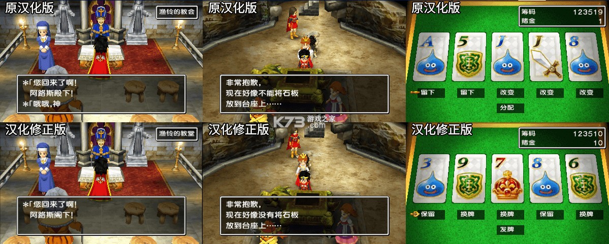 继上次3ds版dq123汉化完成后,这次很感谢被自由大佬邀请,一起重翻dq7,虽然我只负责了冷笑话和部分文稿的修正,不过冷笑话改的很有dq味,非常感谢大家游玩。