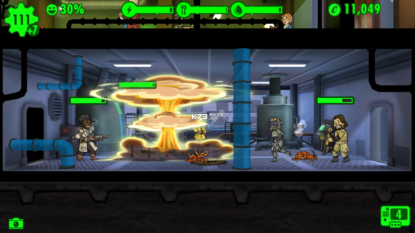 《辐射避难所》受《幽浮》和《模拟城市》等游戏的启发,在游戏中玩家需要控制你避难所里的人类,让他们有愉快的心情。他们会升级,你可以给他们新的物品和武器,当他们需要时你就将这些派送到废土地区。