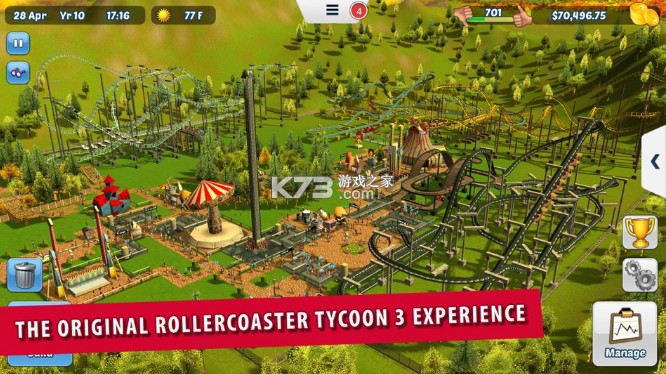《过山车大亨3》以游乐园为主题,将集模拟经营与模拟建设相结合,玩法轻松简单。游戏中通过经营、建造,来打造专属玩家自己的游乐园。