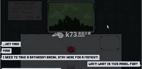 游戏以一个红色的不明按键展开,玩家需要一步步解开围绕在按键身边的各种谜题,最终破解这个有可能毁灭世界的按键,整体来说是一款非常有意思的游戏。