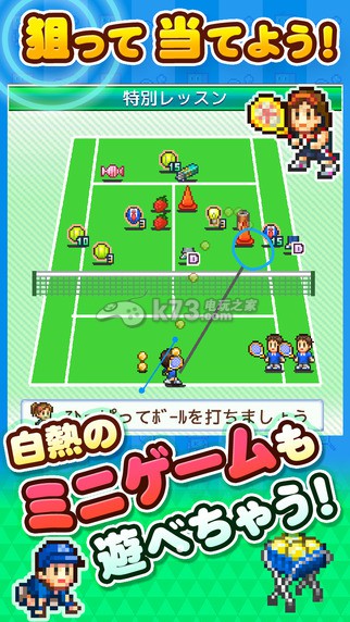 游戏整体画面非常简单,采用了开罗系列的一贯像素风格展开,当然玩法上也依旧非常自由,玩家只需要根据自己的习惯不断的发展属于自己的网球俱乐部就可以了,整体来说是一款可玩性非常高的游戏。