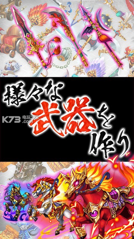 游戏中,会登场100多名三国志有名的武将。率领个性丰富的武将们制作最强的队伍。另外,和其他玩家协力结成最强的军队之外,还能在同盟战中和全国的玩家一起进行公会战斗。